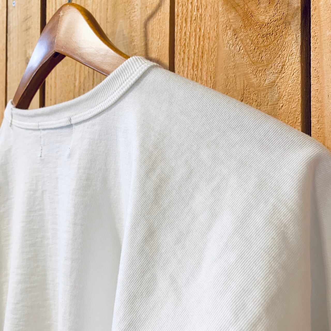 それにより縫い目のゴロツキが一切なく、裾から身頃、袖にかけて徐々に広げることにより、胸元、脇下の窮屈さを完璧に解消。肩の縫い目がないという、ただそれだけのことですが、ここまで着心地が飛躍的に良くなるのかという驚きの、まさに革新的なTシャツの登場です。